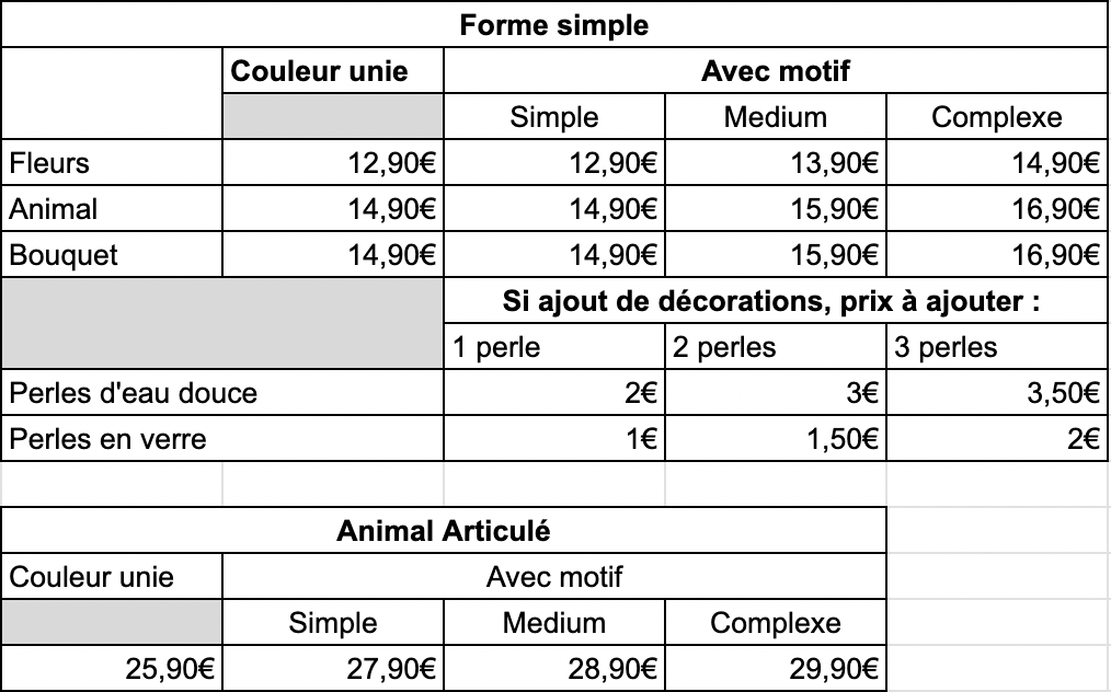Dès réception de ta demande, je t’enverrais le prix et le croquis de ta pièce. Une fois validé de ton côté, tu recevras un lien de paiement sécurisé.